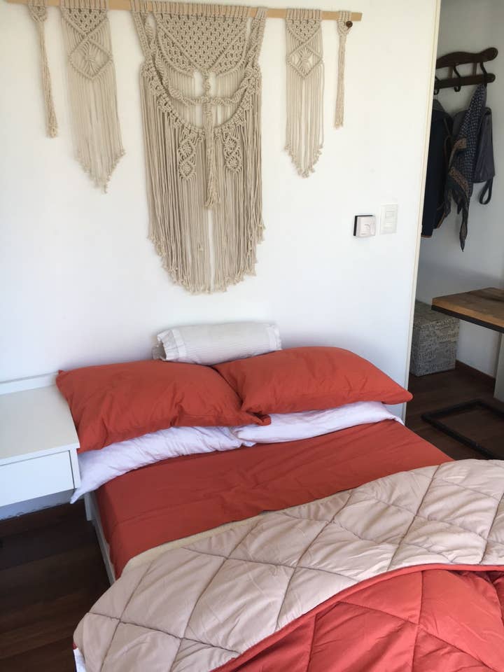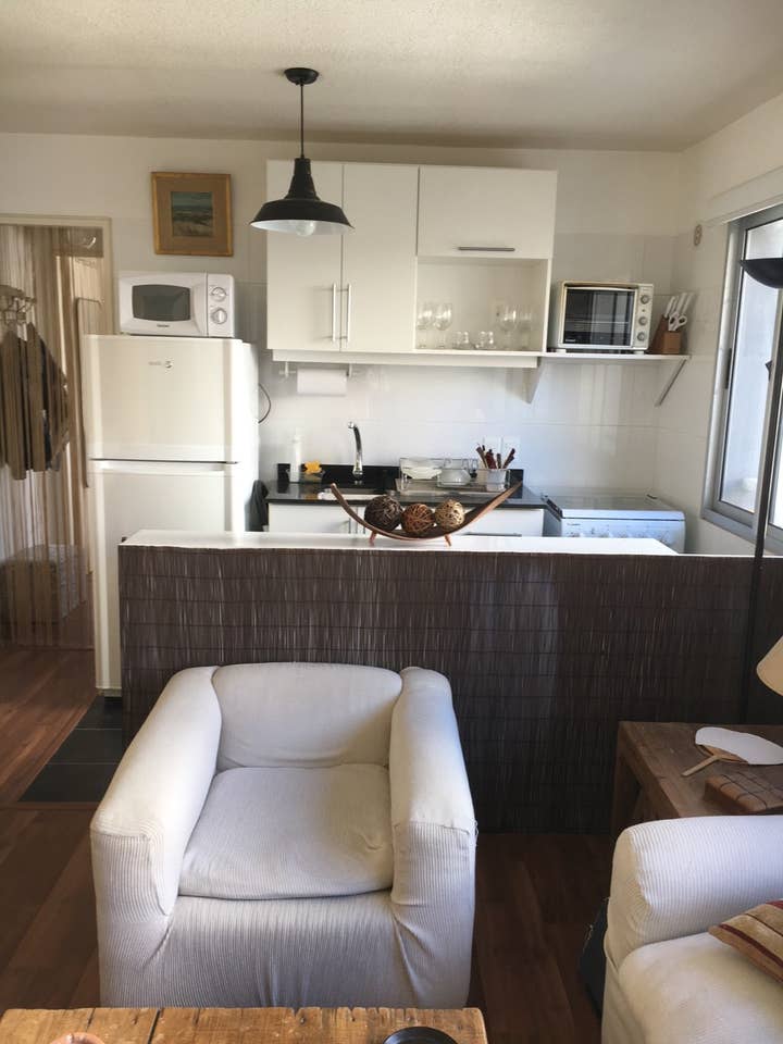 Tiene un dormitorio de cama de doble con salida a la terraza, y luego un area común de living y cocina integrados.